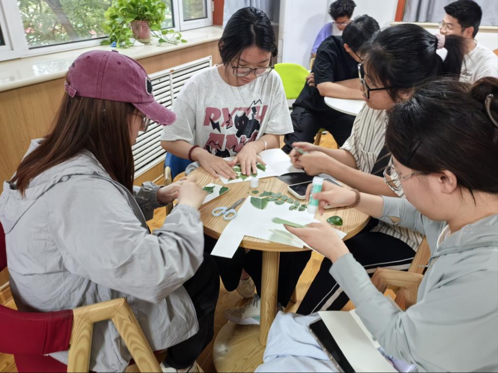 活动中,学院青志部刘雪化身“科学导师”,从植物分类学、生理学等专业视角,讲解不同树叶的生物学特性与美学价值,分享科学处理叶片的方法,并结合植物形态学指导书签设计。同学们认真聆听,汲取知识。动手实践时,大家精心挑选树叶,运用刚学到的技巧,经过压制、修剪、装饰等一系列工序,将叶片转化为兼具生物学特征与美感的书签。有的书签镶嵌着绚丽的干花,有的点缀着可爱的小树叶,每一枚书签都承载着创作者的巧思与热情。