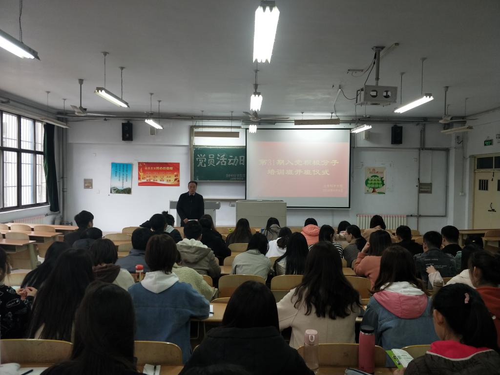 为学习贯彻习近平新时代中国特色社会主义思想和党的十九大精神,不断提高入党积极分子的思想政治素质和政治理论水平,2019年4月9日下午,精品视频8AV在求实楼1012教室举行第31期入党积极分子培训班开班仪式。此次开班仪式由精品视频8AV党总支书记焦德杰主持召开,精品视频8AV党员、预备党员、入党积极分子参加了此次开班仪式。