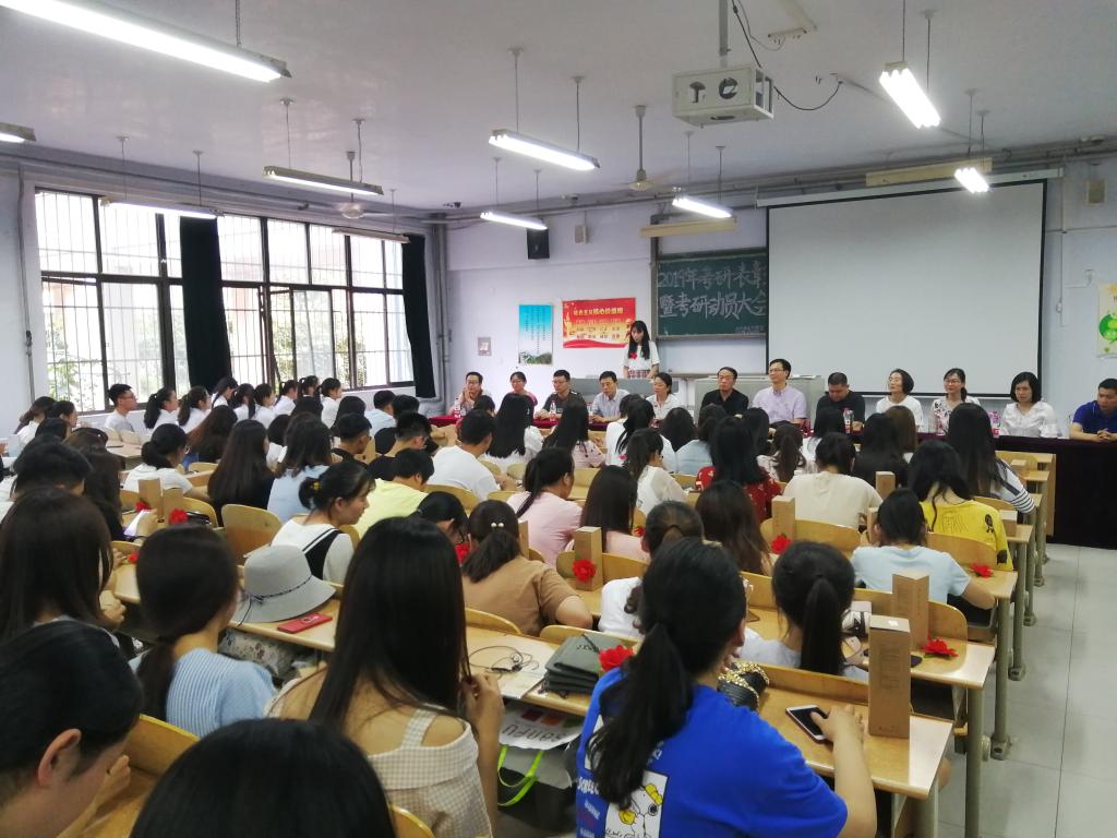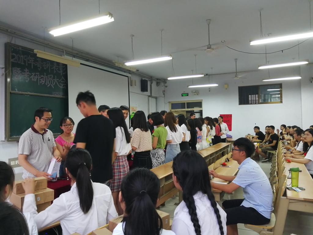 精品视频8AV2019届同学不负众望,在今年的考试中取得了骄人的成绩。为祝贺2019届同学取得优异成绩,同时提高同学们考研学习的积极性和热情,特此,精品视频8AV于2019年6月24日在求实楼1012召开2019年考研表彰暨考研动员大会。出席本次大会的有精品视频8AV领导班子成员、办公室主任、系主任、辅导员和2019届考取研究生的同学代表、2020届学生代表。大会由党总支副书记夏书珍主持。