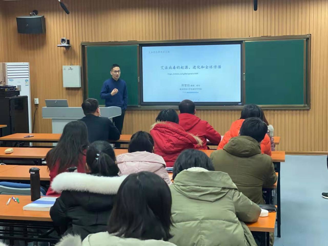 韩管助教授作题为《生物信息学分析实例:艾滋病毒的起源、进化和全球传播》的学术报告,报告围绕艾滋病毒的类型、传播方式、系统发育分析以及全球分布情况展开。孙亮副研究员作题为《生物信息学在科研与现实应用中的作用》的学术报告,报告围绕生物信息学的研究内容、生物信息学与生命多组学、生命多组学研究推动医学科研的发展以及生物信息学的未来应用前景和场景等方面展开。徐松副研究员作题为《生物信息学在微生物生态环境中的发展和应用研究》的学术报告,报告围绕生物信息学在微生物研究的应用、极端环境微生物的研究内容等方面展开。报告结束后,三位专家与老师和同学们进行了热烈的学术讨论,并对精品视频8AV、山东省功能性生物资源开发与利用高校重点实验室发展给出了指导性意见和建议,对推动精品视频8AV人才培养和高校重点实验室的发展,发挥积极的作用。