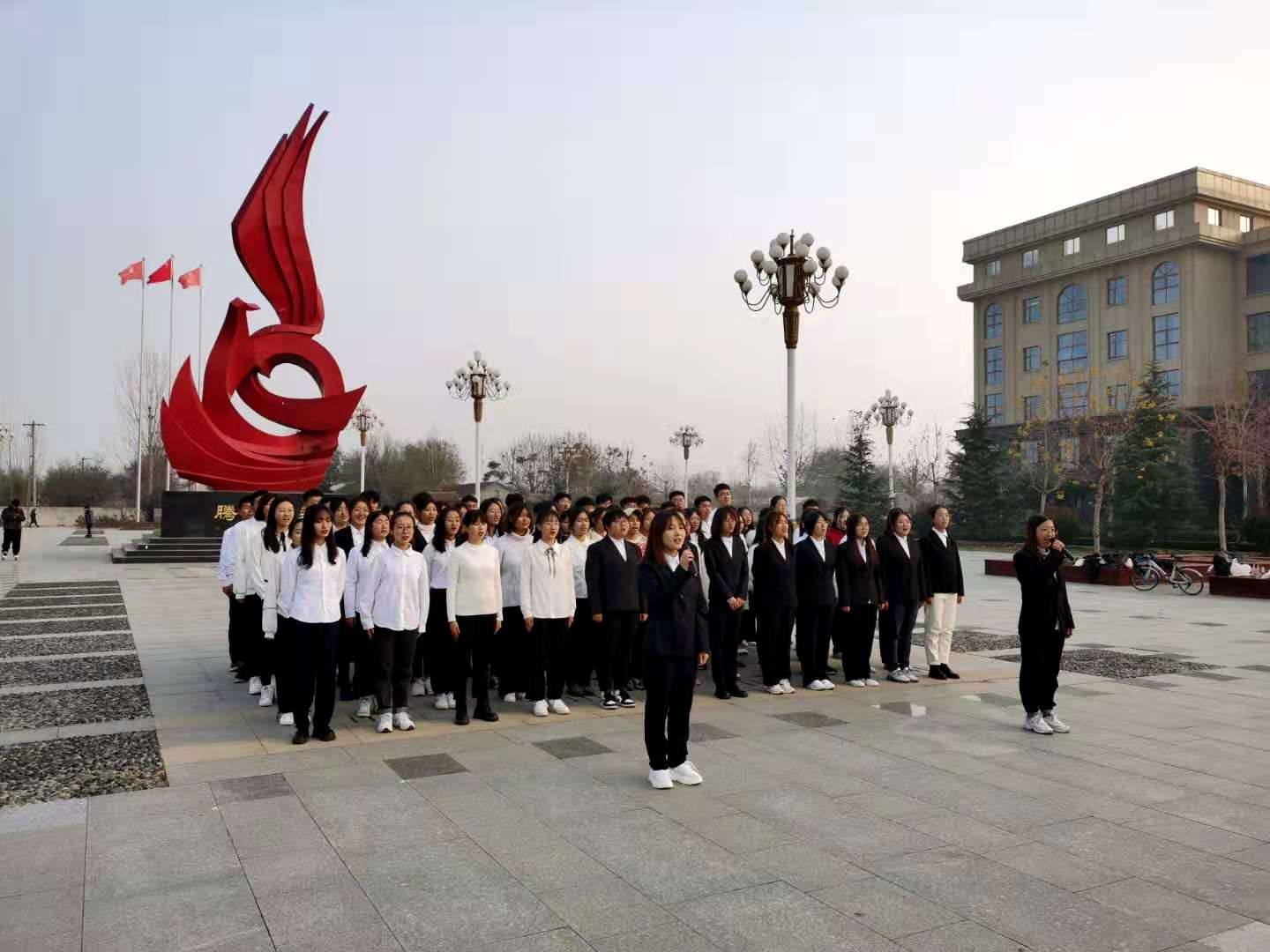 为深入学习贯彻党的十九届五中全会精神,纪念“一二•九”爱国运动八十五周年,铭记先辈们的英勇事迹,激发学生们的爱国主义情怀,精品视频8AV组织青马班全体成员于2020年12月5日在腾飞广场举办“一二•九”红歌合唱活动。