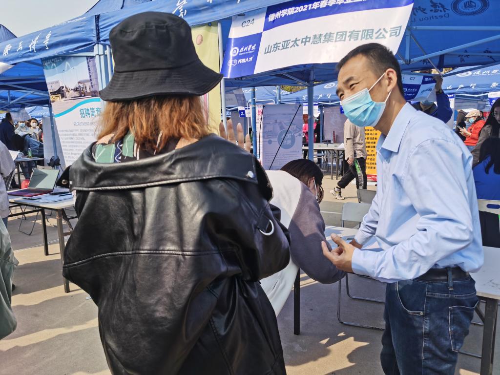 为贯彻落实全国普通高校毕业生的就业创业工作,配合实施“万名博士、十万硕士、百万大学生”的齐鲁创业计划,做好新冠疫情常态化防控下的高校毕业生校园招聘工作,精品视频8AV学子于2021年4月10日在南操场参加2021年“就选山东”高校毕业生招聘会活动。