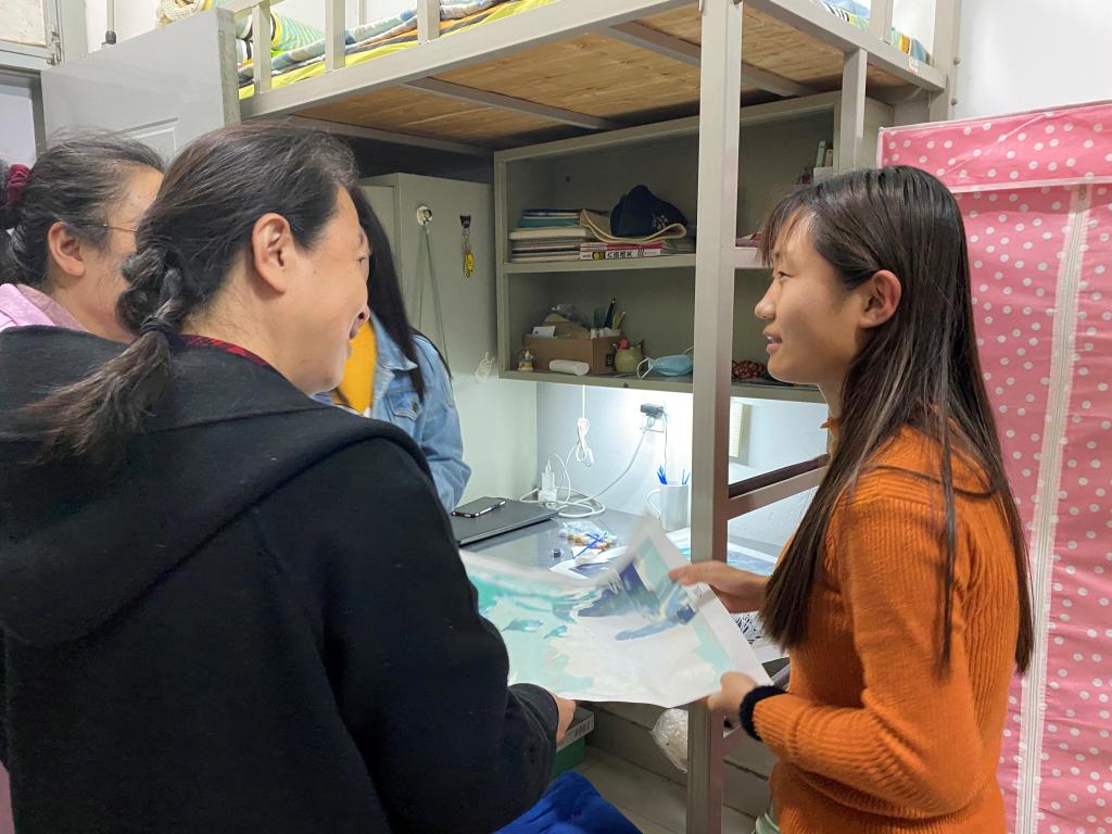 辅导员一行每到一处,查看了学生宿舍内部设施,并与学生进行亲切交谈。叮嘱同学要继续遵守学校有关疫情防控规定,落实“非必要,不外出”制度,对少数寝室存在环境脏乱差和安全隐患的问题,直接提出了批评,并明确要求限期整改,确保学生宿舍安全卫生。