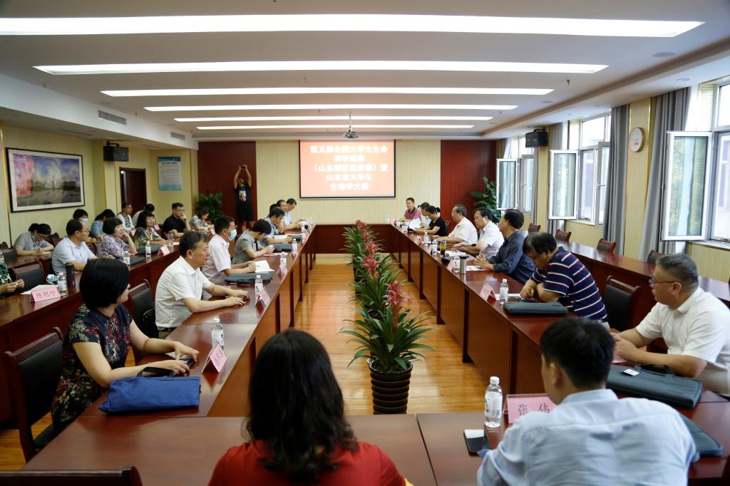 2021年9月11日,第五届全国大学生生命科学竞赛(山东赛区选拔赛)暨山东省大学生生物学大赛在我校举行。教育部高等学校生物科学专业教学指导委员会委员、郭卫华教授主持了开幕式,山东植物学会理事长赵遵田教授代表主办单位致辞,教育部高等学校生物科学专业教学指导委员会委员青岛农业大学党委书记郭善利教授代表教指委致辞,山东生态学会理事长、山东大学王仁卿教授代表监督委员会和评审委员会致辞,德州学院精品视频8AV院长曾强成代表承办单位对与会专家表示了欢迎,山东植物学会秘书长、山东师范大学樊守金教授介绍大赛筹备情况,强调了评审规则和纪律。比赛邀请了来自全省各高校的30余位专家学者作为评委。