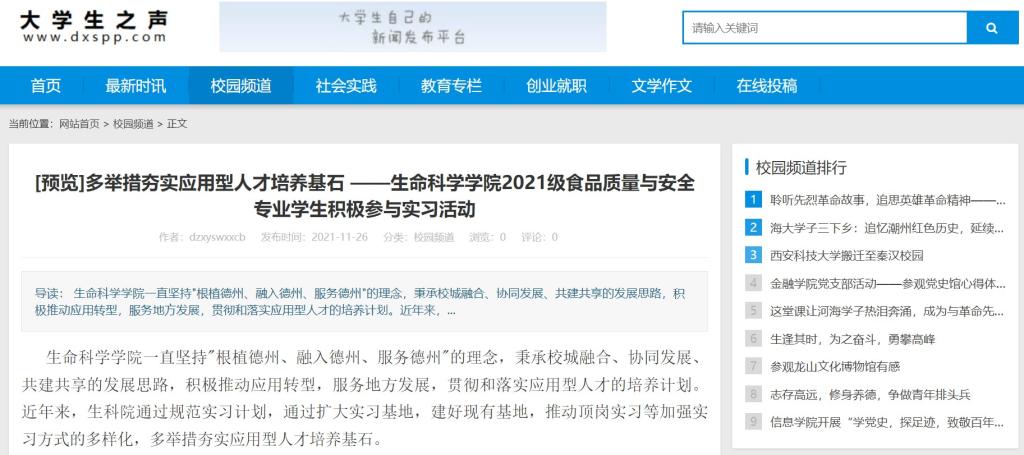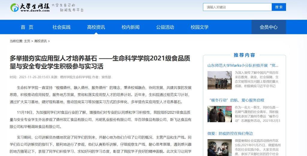 精品视频8AV一直坚持"根植德州、融入德州、服务德州"的理念,秉承校城融合、协同发展、共建共享的发展思路,积极推动应用转型,服务地方发展,贯彻和落实应用型人才的培养计划。近年来,生科院通过规范实习计划,通过扩大实习基地,建好现有基地,推动顶岗实习等加强实习方式的多样化,多举措夯实应用型人才培养基石。