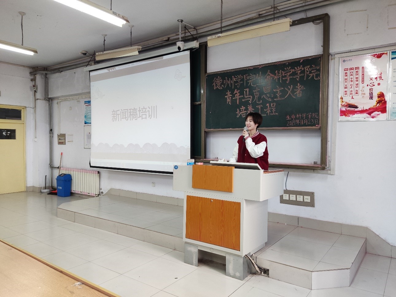 此次培训邀请了德州学院新媒体中心的代表武亚潇,她详细的为大家讲解了新闻稿的基本框架及六要素,并分享了一些撰写新闻稿的技巧。武亚潇告诉学员们,新闻类稿件须注重事件的政治性、真实性与时效性以及标点符号的正确使用等注意事项。随后,为了让大家能切实体会到如何写好新闻稿,武亚潇向学员们分享了一些优秀新闻稿件并对其做了具体的分析。学员们纷纷表示,此次青马班培训让他们对新闻稿的撰写有了更深层次的理解,提高了他们撰写新闻稿的信心。