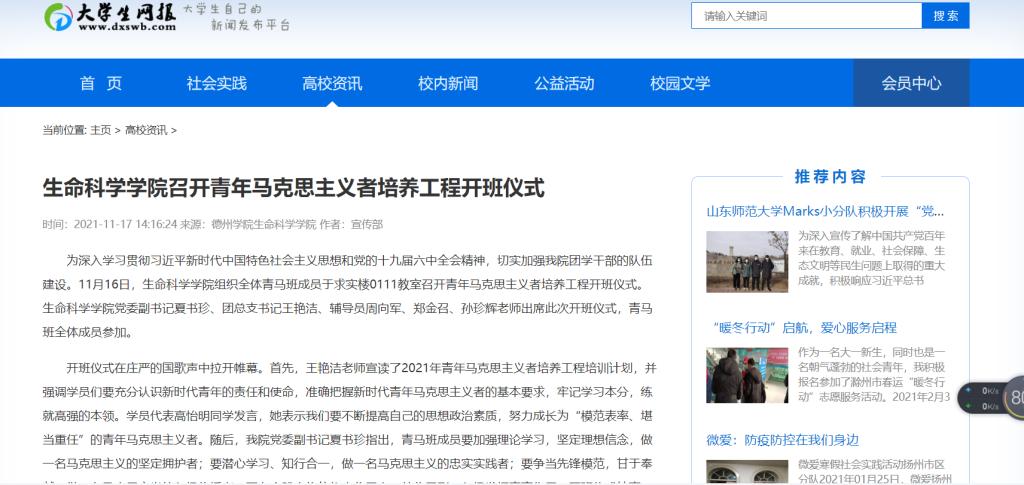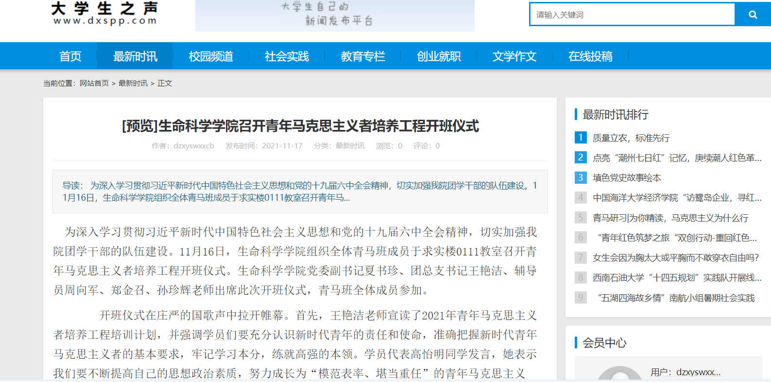 为深入学习贯彻习近平新时代中国特色社会主义思想和党的十九届六中全会精神,切实加强我院团学干部的队伍建设。11月16日,精品视频8AV组织全体青马班成员于求实楼0111教室召开青年马克思主义者培养工程开班仪式。精品视频8AV党委副书记夏书珍、团总支书记王艳洁、辅导员周向军、郑金召、孙珍辉老师出席此次开班仪式,青马班全体成员参加。