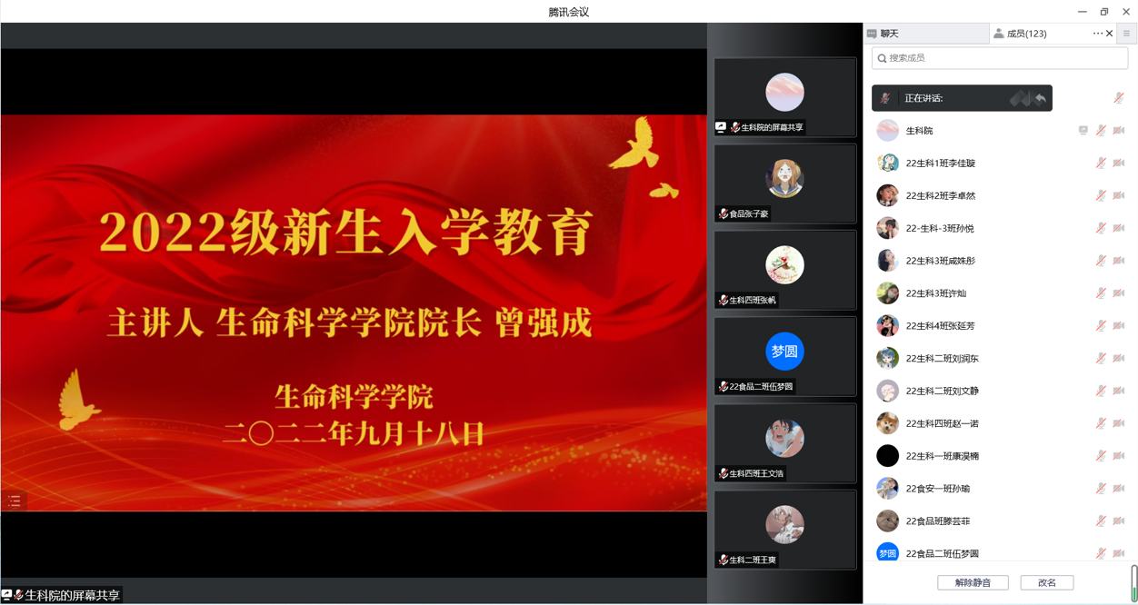 9月18日上午,精品视频8AV采用线上线下相结合的方式,为新生开展入学教育。本次会议由院长曾强成主讲。