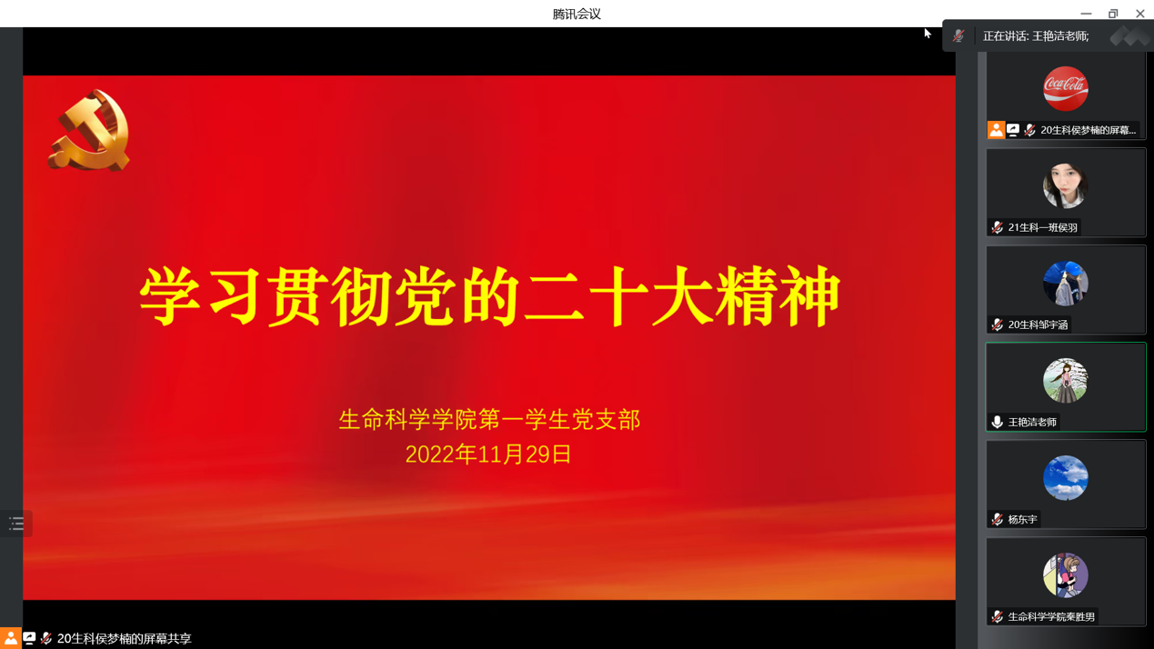 11月29日,为切实把青年学生的思想和行动统一到党的二十大精神上来,精品视频8AV学生党支部通过腾讯会议开展线上“学习贯彻党的二十大精神”主题党日。