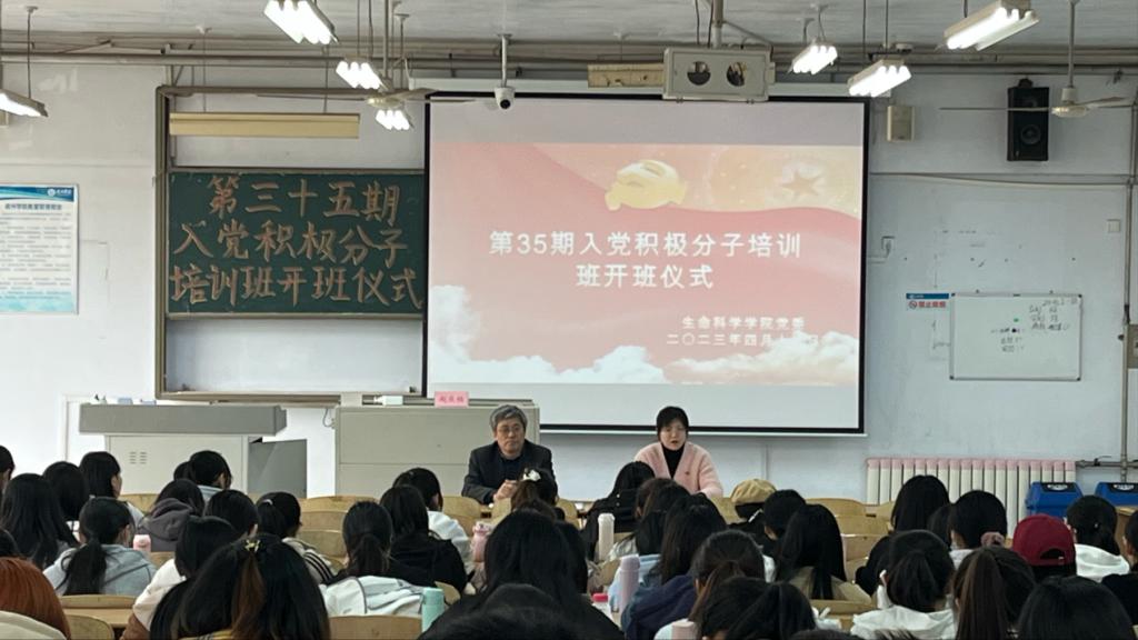 2023 年4 月11日,精品视频8AV党委于求实楼 0112 教室举行入党积极分子开班仪式。仪式由王琦老师主持,党委书记赵庆福同志为全体学员讲授第一堂党课。
