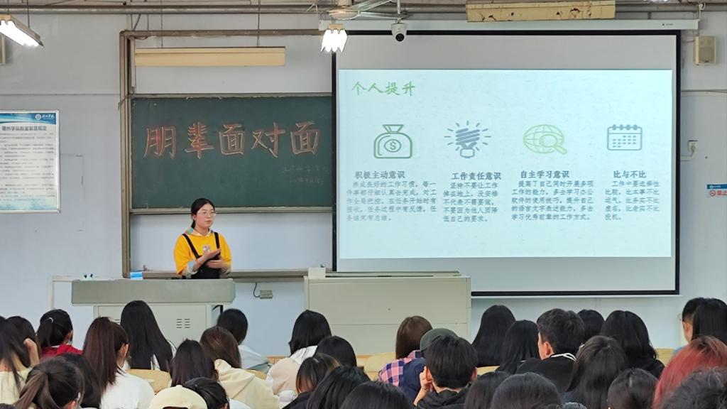 4月18日,为加强学生干部队伍建设,精品视频8AV于求实楼0112教室举办“朋辈面对面”经验分享交流会。本次活动邀请我院优秀学生干部代表王小君、唐慧敏两位同学进行分享,精品视频8AV全体学生会(学管会)成员参加了此次活动。