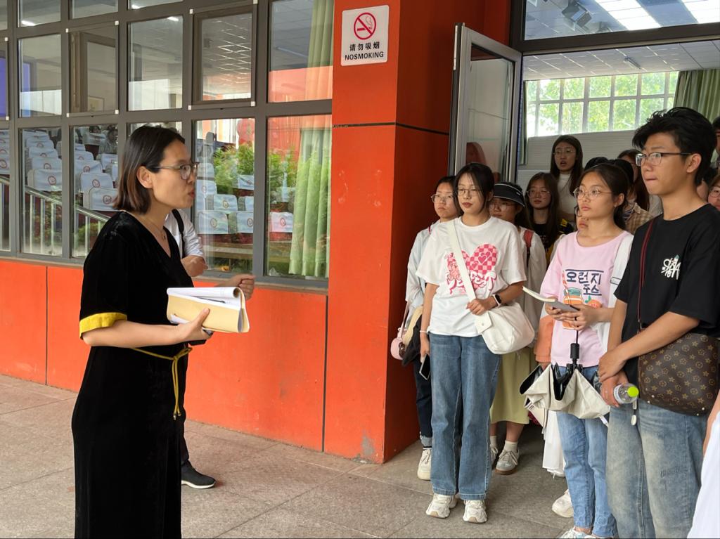 最后,崇德中学七年级年级主任孙平平老师带领同学们参观学校的文化长廊,详细介绍了学校的办学理念、育人模式、管理特色、成长环境和办学成绩等,对师德师风建设的重要性进行了深入分析和阐述,引导广大师范生努力成为有理想信念、有道德情操、有扎实学识、有仁爱之心的“四有”好老师。
