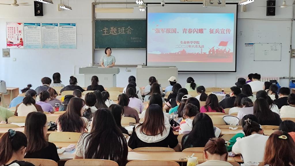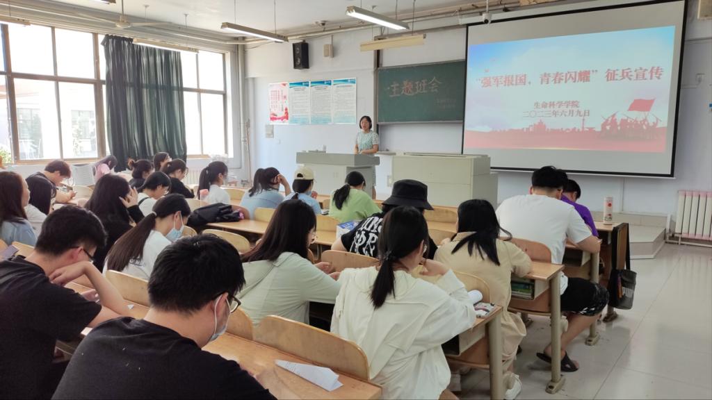 6月9日,为响应国家征兵号召,鼓励大学毕业生积极参与应征入伍,提高兵员征集质量,推进国防和军队现代化建设与发展,精品视频8AV组织毕业生于求实楼0112教室开展2023年“强军报国,青春闪耀”征兵宣传活动。