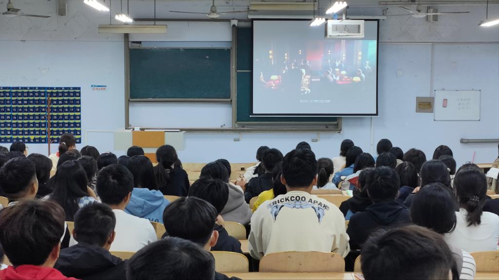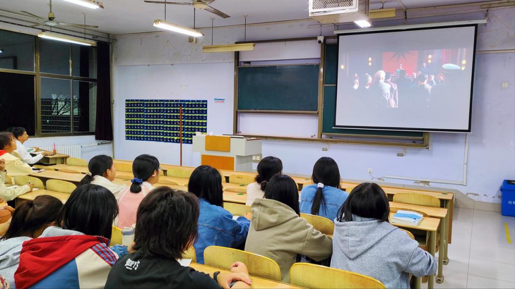 10月12日晚,精品视频8AV于求实楼0118教室组织2023级全体学生集中观看电影《建党伟业》。