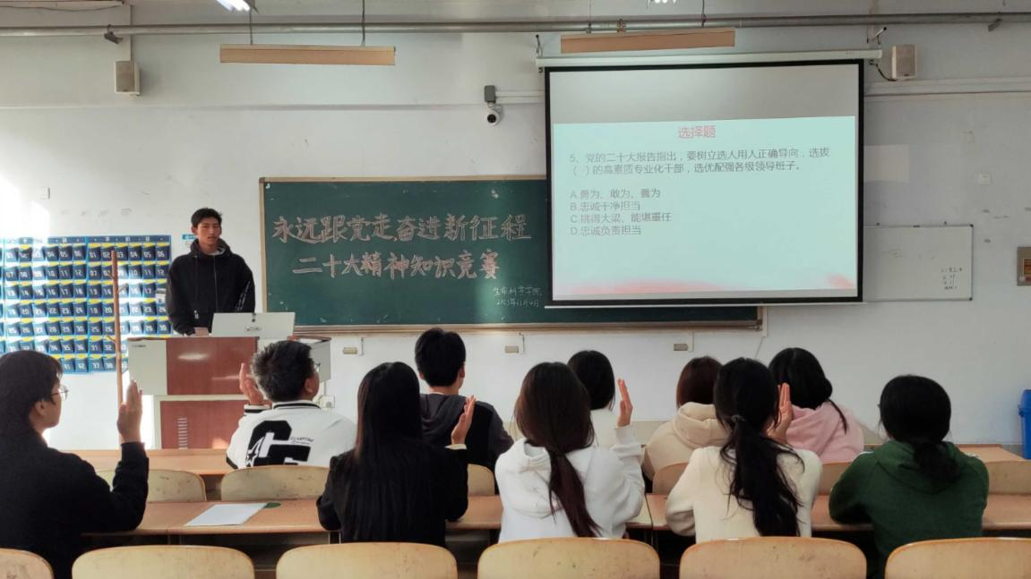 11月4日,为推动党的二十大精神入脑入心,引导学生把握时代脉搏,担当青春使命,精品视频8AV于求实楼0101教室举办“永远跟党走,奋斗新征程”党的二十大精神知识竞赛。
