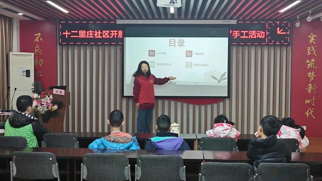 活动中,志愿者向小朋友们介绍了动物的基本概念和分类,用生动有趣的图片、视频,引导大家认识各种动物,了解它们的生活习性和特点,志愿者们还通过猜谜语的方式,让小朋友们更加深入地了解动物。随后,志愿者向大家讲解了卡纸制作动物的方法,小朋友们纷纷动手尝试,发挥自己的想象力,用彩色卡纸制作出各种各样的动物,在动手动脑中感知动物世界的神奇。