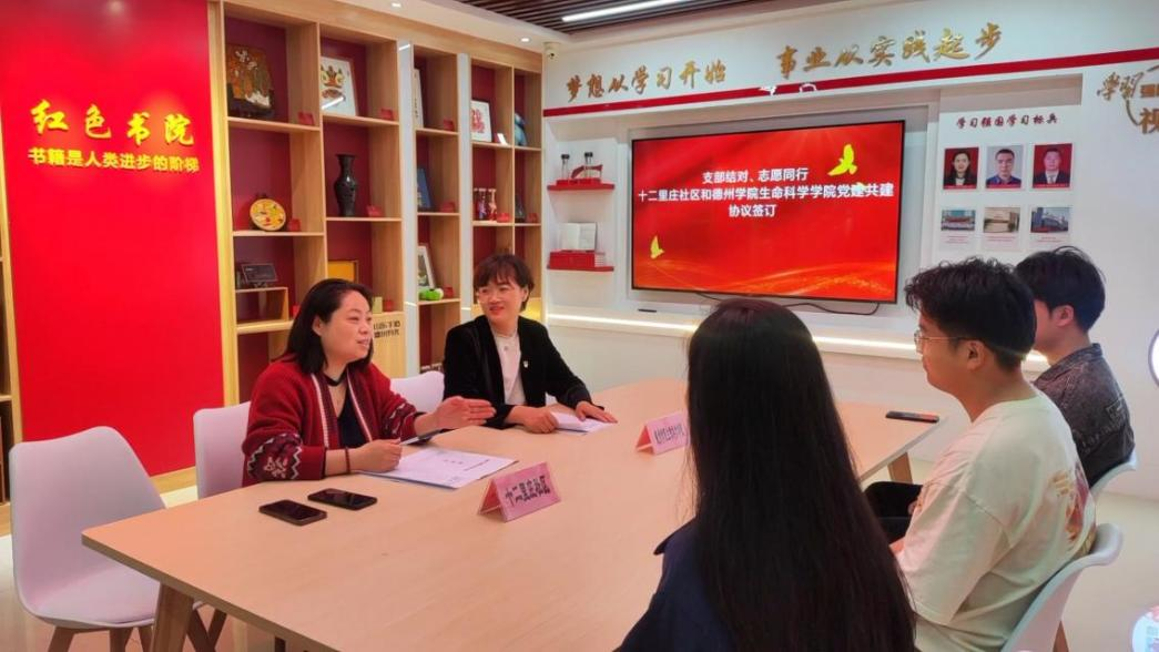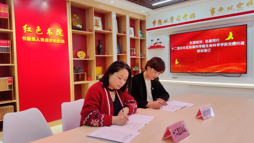 4月23日下午,德州学院精品视频8AV第三学生党支部书记孙珍辉与十二里庄社区中心与党支部书记阎攀攀于红色书院共同签订《德州天衢新区共驻共建协议书》,形成“共建组织、共抓队伍、共享资源、共谋发展”的党建工作新格局,共育“德才兼备”的时代新人。