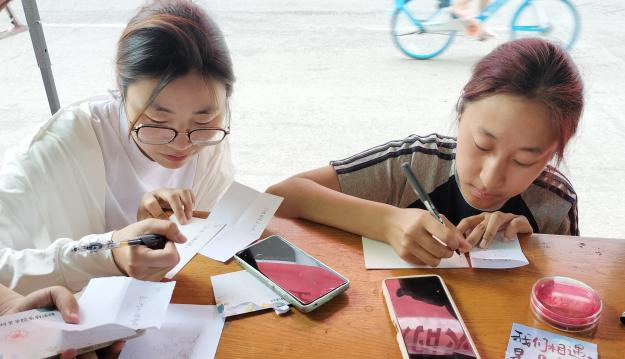 活动伊始,志愿者对同学们近期的心理困扰进行征集,并把征集来的问题写在纸上,揉成一团扔进情绪垃圾桶里,这一行为象征着烦心事带来的压力和焦虑已被释放掉。活动当天,同学们从桶中随机抓取一个纸团,针对纸团上的困扰思考如何帮助该同学调节情绪和解决问题,然后将建议写在明信片上。通过朋辈互助的方式,对同学们的心理困扰进行干预,让每一位参与者都感受到尊重和关爱。