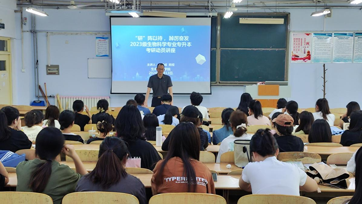 6月13日,为持续推动我院考研工作的开展、充分激发我院学生考研积极性,精品视频8AV于求实楼0111教室举办2023级生物科学专业专升本考研动员讲座,讲座由生科院院长主讲。