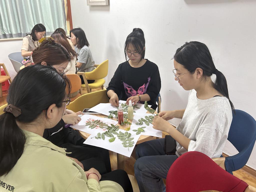 6月25日,为让同学们接触大自然,提升审美素养,精品视频8AV于事务发展中心二楼博学谷举办“喷绘树叶画影,乐享多彩生机”树叶喷画活动。