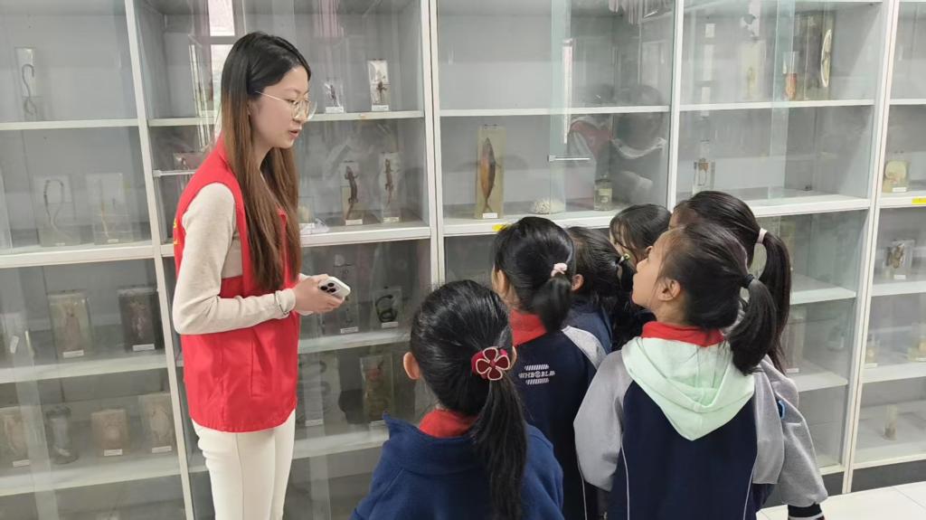 活动伊始,在志愿者的带领下,小学生们仔细观察了各类动物标本,聆听关于动物习性、生态环境及其在自然界的角色等背后的故事,并认真记录所学内容。互动环节中,孩子们踊跃提问,与志愿者们就动物世界的种种奥秘展开了热烈讨论,极大激发了他们对自然科学的热爱。