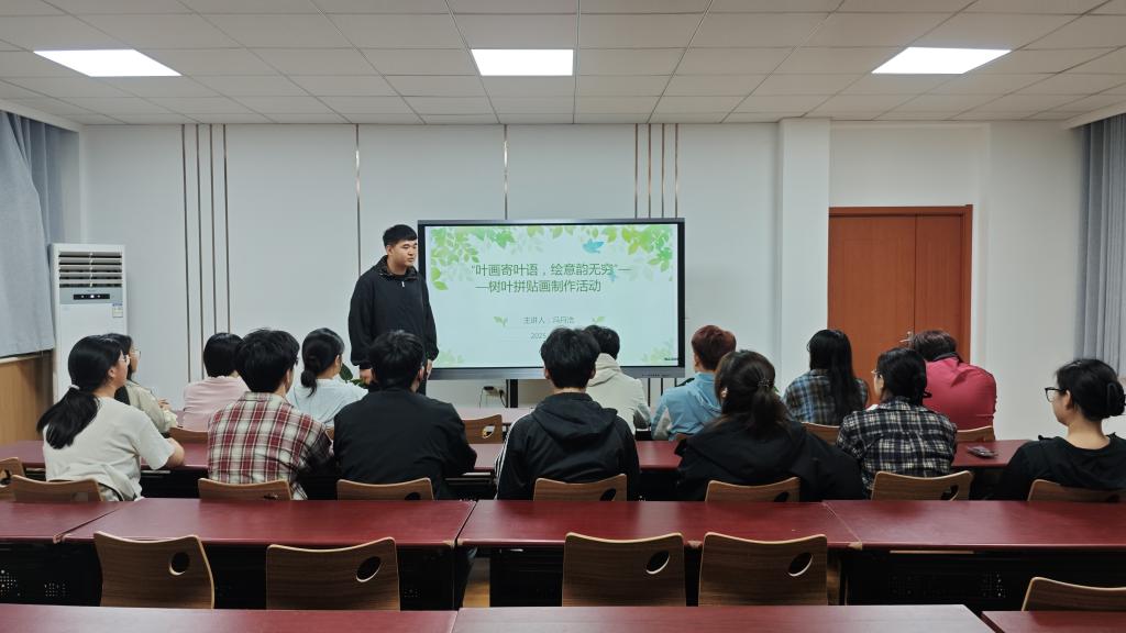 5月22日,精品视频8AV依托生命科学协会于大学生事务与发展中心二楼启智堂开展“叶画寄叶语,绘意韵无穷”树叶拼贴制作活动,引领学生探寻科学与艺术交融之美。