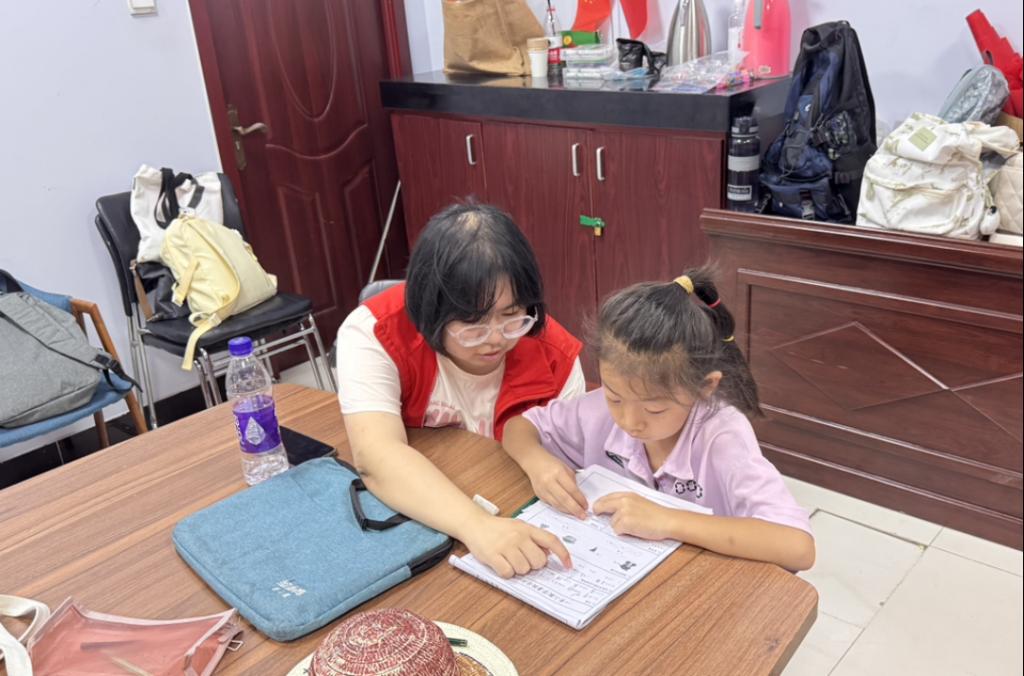 为实现精准服务,志愿者们提前调研两地儿童的年龄层次、学习需求与兴趣点,从“课程设计”到“日常陪伴”全方位筹备。课程组围绕科学启蒙、红色教育主题,反复打磨教学内容,设计互动环节,确保知识传递既专业又生动;同时,考虑到孩子们假期作业辅导的刚需,专门组建辅导小组,梳理不同年级的作业难点,准备个性化辅导方案,让每一份付出都直击孩子们的成长需要。