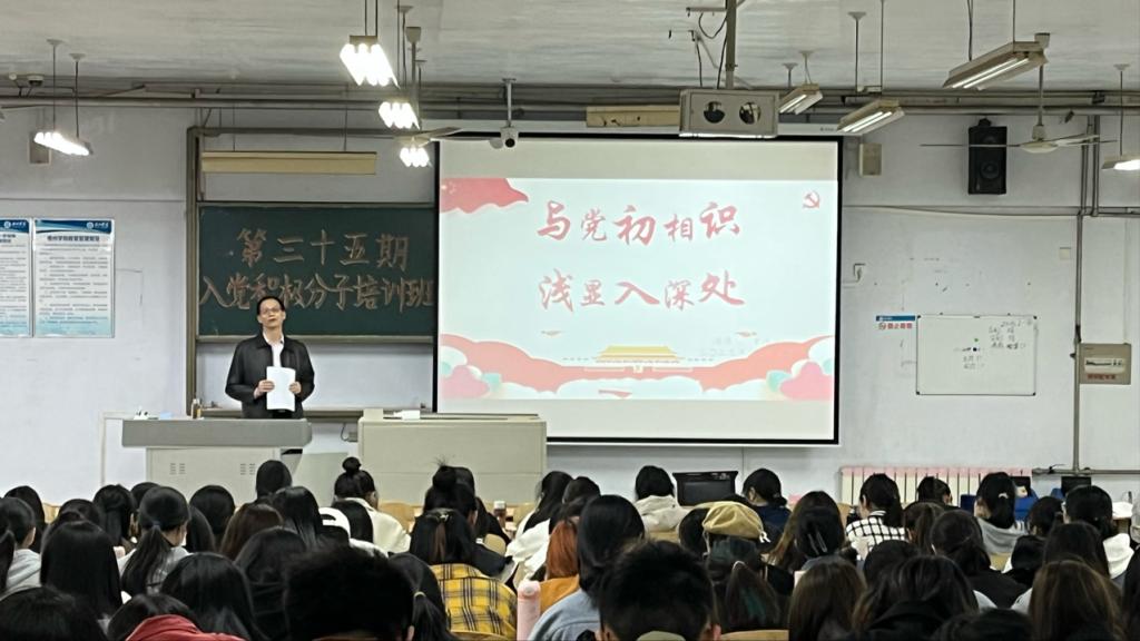 2023年4月12日,为提高入党积极分子的思想政治素养,加深入党积极分子对党的性质和宗旨的认识,精品视频8AV于求实楼0112教室开展“与党初相识,浅显入深处”入党积极分子培训课。此次课程由院长曾强成主持,参训学员共127名。