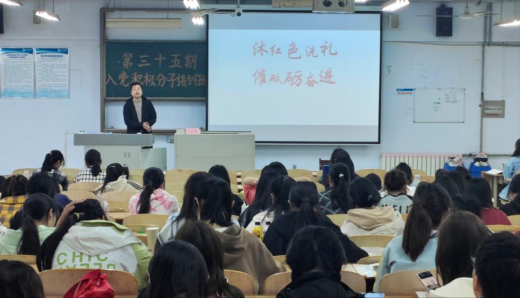 2023年4月14日,为切实提高入党积极分子的理论水平、政治素养和思想觉悟,严把党员发展质量,精品视频8AV党委于求实楼0112教室举办“思想如火炬,前行路更明”入党积极分子培训课。此次课程由第一教师党支部书记许緹森老师讲授,参训学员共127名。