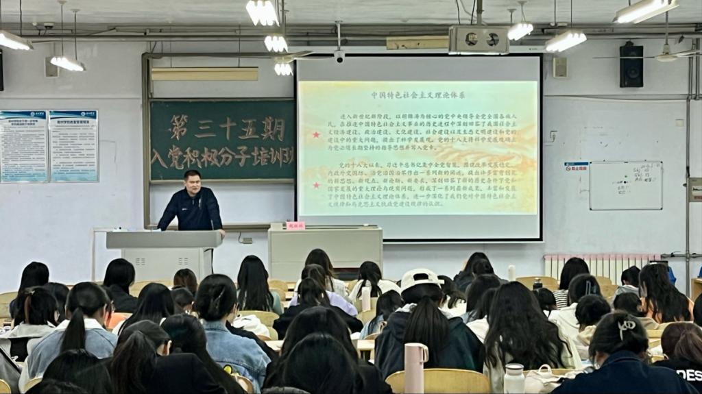 2023年4月17日,为进一步加强入党积极分子对党的认识,把牢党员发展“入口关”,精品视频8AV党委委员、副院长魏振林同志于求实楼0112教室作“承前人伟绩,走中国道路”主题党课讲座。参训学员共127名。
