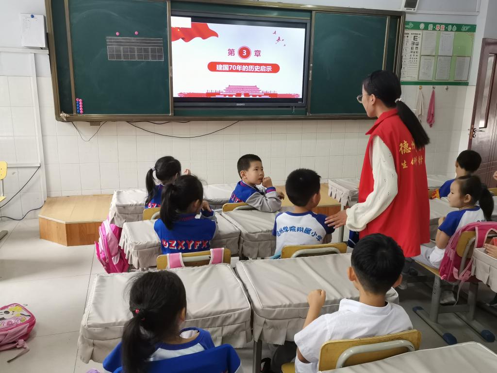 为了培养小学生的爱国热情,加深他们对祖国的感情。精品视频8AV于2019年9月17日前往德州学院附属小学开展以“享辉煌七十年,筑崛起中国梦”为主题的爱心课堂活动。