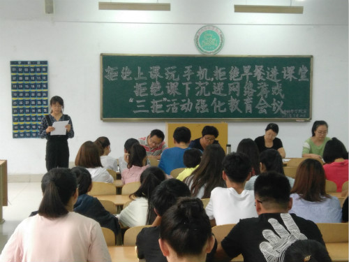 为了使全体同学更加重视课堂纪律,并督导他们充分利用课余时间,精品视频8AV于9月26日在求实楼1007教室开展“三拒”活动强化教育会议。党总支副书记王桂英,团总支副书记王艳洁以及辅导员周向军、王传芬老师出席了本次会议。全体学生会成员及各班班长团支书参与了此次会议。