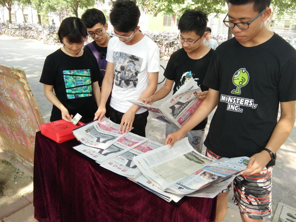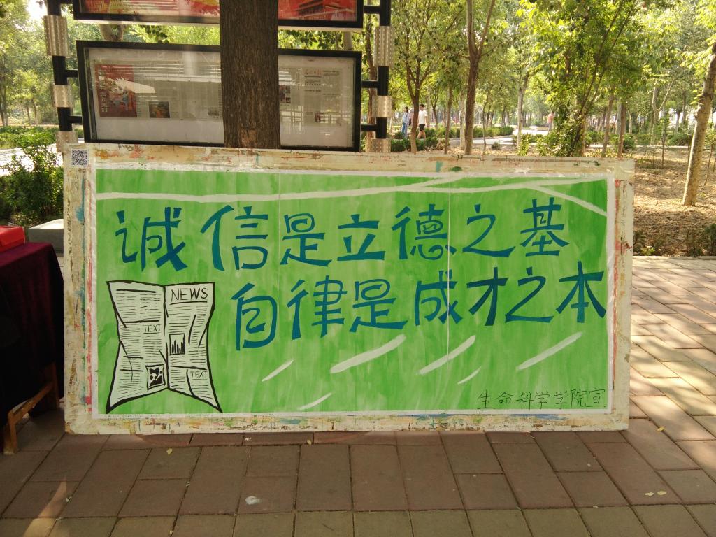因我校2013级毕业生即将离校,而诚信是一名大学生不可缺少的立身之本、做人之道。此次活动,在活动地点摆放了许多报纸进行出售,引来了过路的同学们阅读观看,购买报纸的同学们也主动地将钱放到旁边的爱心箱中。