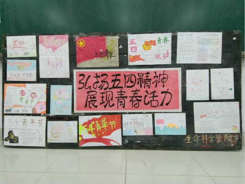 此次活动开展的十分顺利。无论是从报名人数,还是从上交作品的数量与质量,都能从中看出同学们在以一种认真的态度积极准备着。从作品中,我们可以看到跃然纸上的卡通形象,书法更是入木三分,同学们把弘扬五四精神,展现青春活力的活动主题展现的淋漓尽致。筛选出作品后,贴于展板之上。同学们可以更方便的欣赏参观。