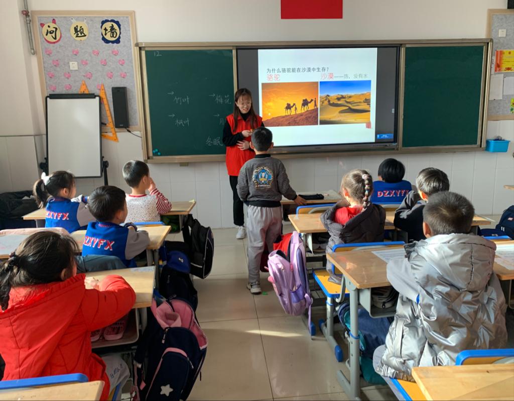 12月7日,为引导同学们树立保护动物的意识,了解动物生存的智慧,我院于德州学院附属小学北校区举办“动物生存显智慧,百年峥嵘展新篇”爱心课堂活动。此次活动邀请了2020级生物科学专业的潘亚宁同学作为志愿者老师前往德州学院附属小学北校区一年级三班授课。
