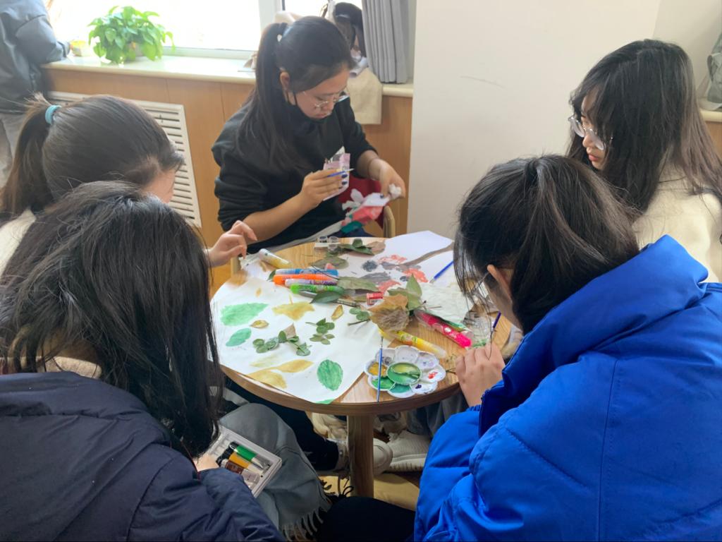 主讲人向同学们介绍了党的十九届六中全会精神中有关生态建设的内容,他表示,在生态文明建设上,党中央以前所未有的力度抓生态文明建设,美丽中国建设迈出重大步伐,我国生态环境保护发生历史性、转折性、全局性变化。随后,主讲人向同学们介绍了植物拓印的流程。制作植物拓印需要经过着色、印制、敲打、完稿等几道工序,同学们跃跃欲试,亲自尝试植物拓印,通过他们手中的树叶和鲜艳的颜料描绘出了一幅幅精美的拓印作品。活动结束后,同学们纷纷表示,在此次活动中,他们真切感受到了大自然的魅力,同时也领悟到了党的十九届六中全会精神中生态文明建设的内涵。