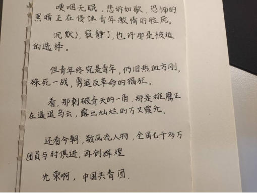 为弘扬中华民族书法艺术,提高同学们的艺术修养,精品视频8AV于3月10日举办“丹青溢彩书墨韵,百年团史沁人心”书法大赛活动。