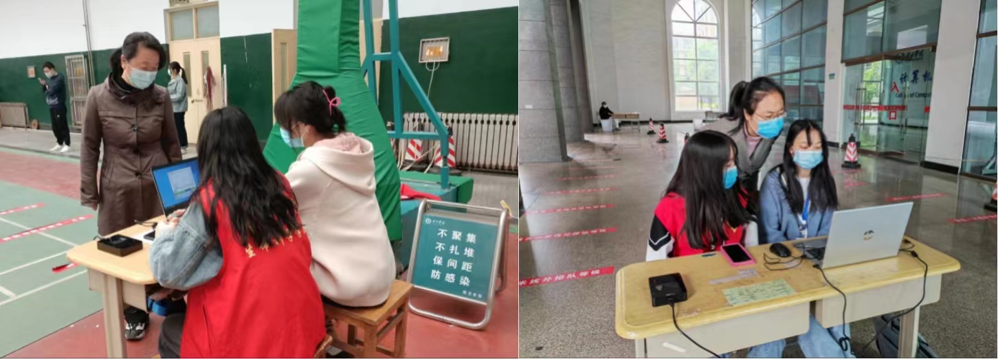 学生党员们分工协作,密切配合,耐心地指引现场师生在健康德州APP上提前登记相关信息并进行预约,提醒他们佩戴好口罩、间隔一米有序排队,配合医务人员核对并录入身份证信息,引导师生在采样结束后快速有序的撤离,保证人员不聚集、不扎堆,确保核酸检测工作安全有序地开展。