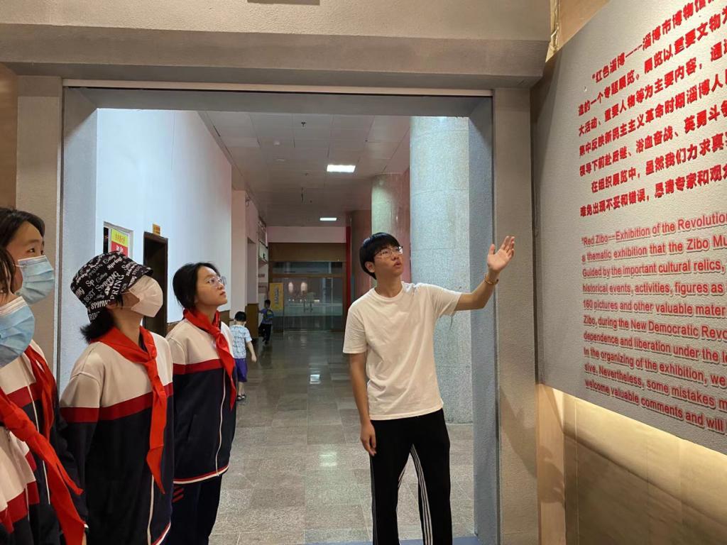 志愿者们带领淄博市张店区第八中学的学生代表来到红色淄博—淄博市博物馆馆藏革命文物展,并以时间为主线,通过197件文物、160幅图片和其他宝贵资料,向学生讲述了淄博人民在中国共产党的领导下前赴后继、英勇斗争的光辉历史。随后,志愿者们分别前往社区,利用“党史学习教育”主题宣传展板和宣传手册,紧紧围绕文化传承、科技创新等内容,从不同历史阶段讲述中国共产党人在奋斗中的典型故事和感人事迹,引导社区群众正确认识学党史的重要意义,让大家对开展党史学习教育,牢记初心使命有了更加深刻的理解和认识。