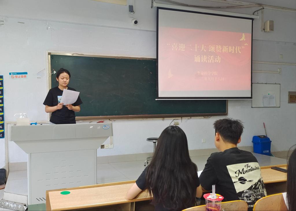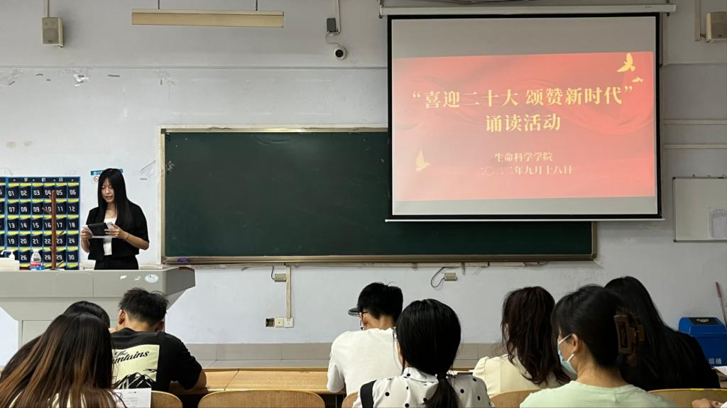 9月18日,为更好的彰显中华文化语言魅力,迎接党的二十大胜利召开,精品视频8AV于求实楼0105教室举办“喜迎二十大,诵赞新时代”经典诵读活动。