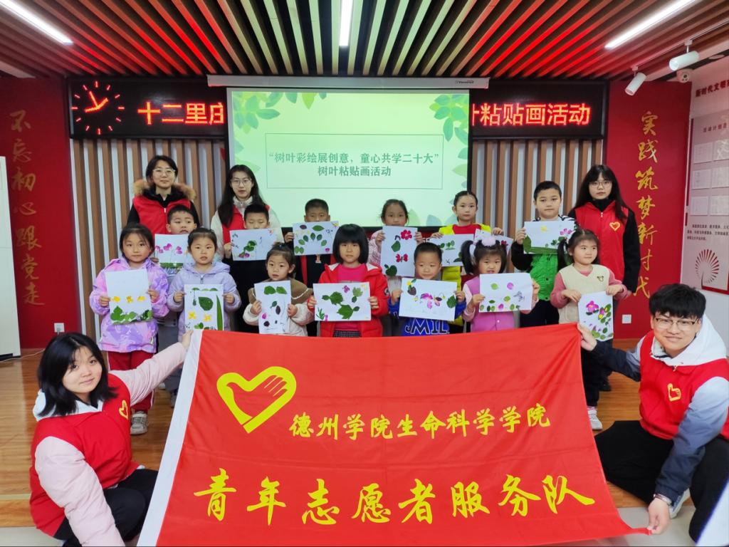 4月22日,为深入学习贯彻党的二十大精神,激发青少年的思维想象力和实践创造力,精品视频8AV联合宋官屯街道办事处开展“青春学习二十大,致敬百年绘风华”树叶粘贴画活动。