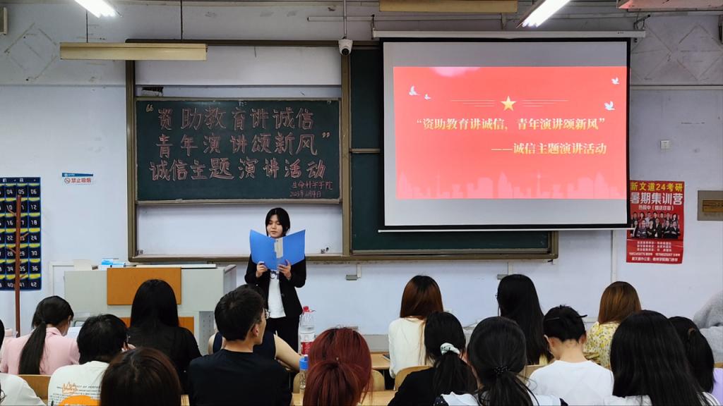 6月13日,为帮助同学们树立诚信意识,弘扬诚信之风,精品视频8AV于求实楼0118教室举办“资助教育讲诚信,青年演讲颂新风”主题演讲活动。