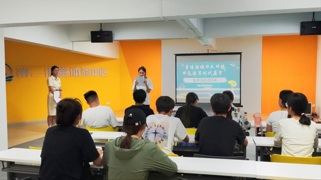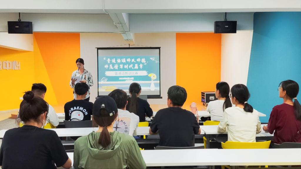 6月14日,为提升师范生教学的语言文化素养,推动新时代的师德师风建设,精品视频8AV于博文楼六楼大学生活动中心举办“普通话颂师风师德,师范情写时代篇章”普通话朗读比赛。