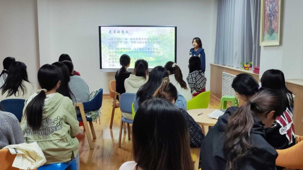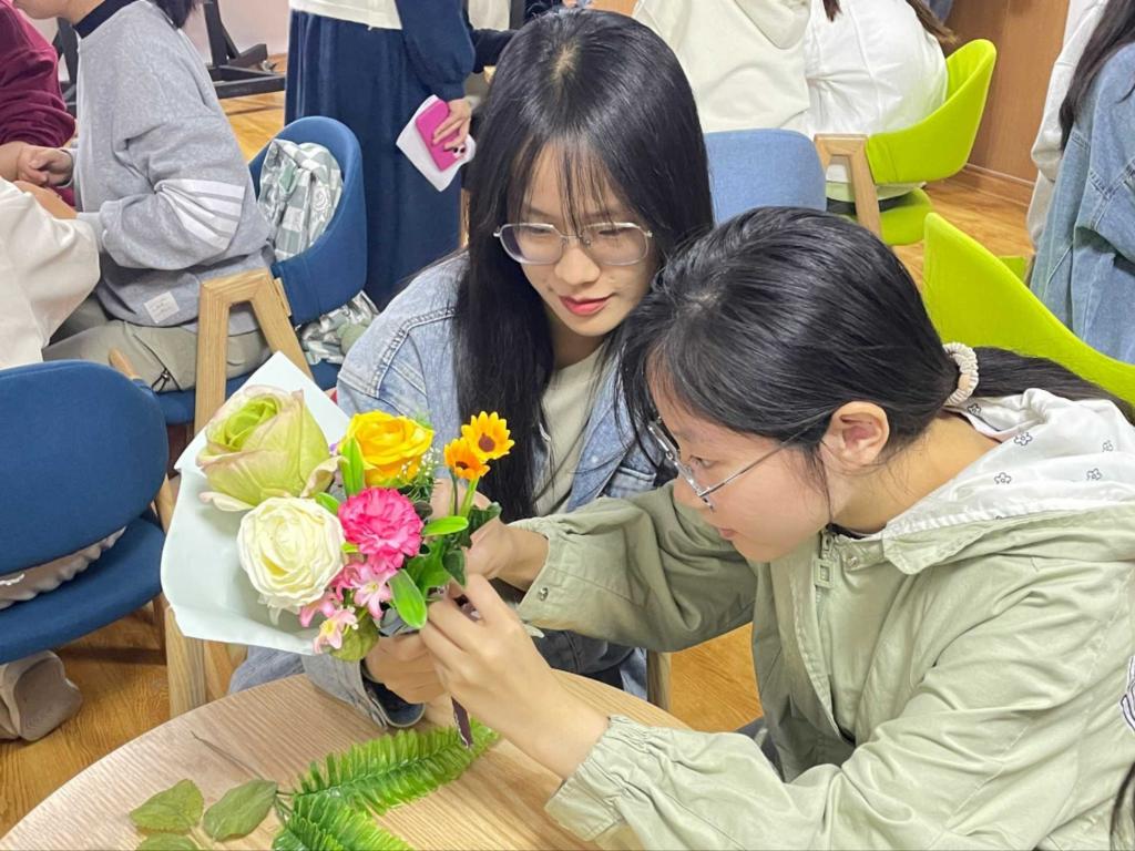 10月26号晚,精品视频8AV于事务发展中心二楼博学谷举办“巧手现花束,识趣花艺间—花束设计讲解”活动。