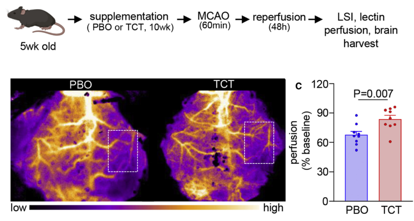 下调SERPINE1增强了miR-1224模拟物在脑内皮细胞中的血管生成反应。通过饮食TCT和药物抑制SERPINE1,增加了中风影响部位的脑血管血流量,并保护了中风。