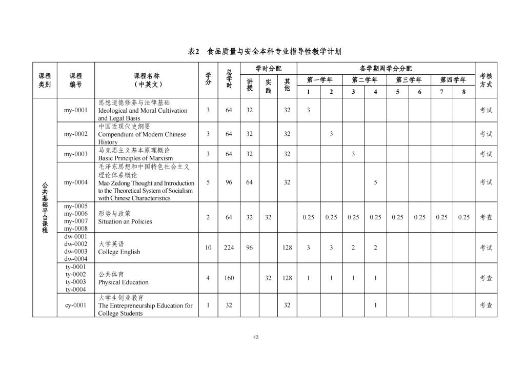 2020版食品质量与安全专业人才培养方案
