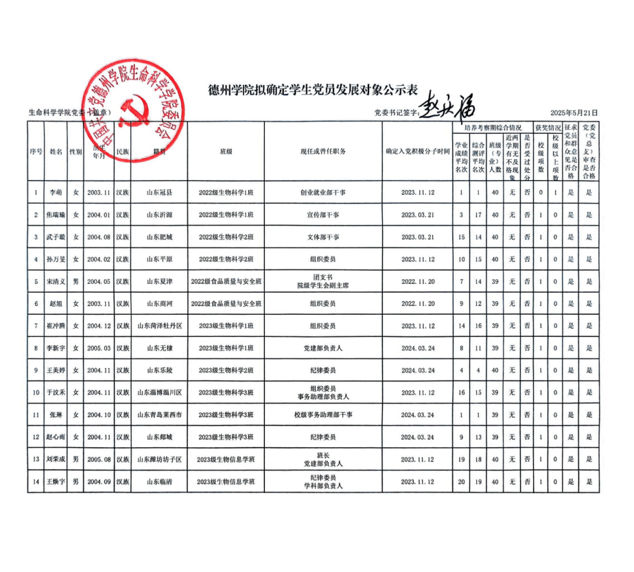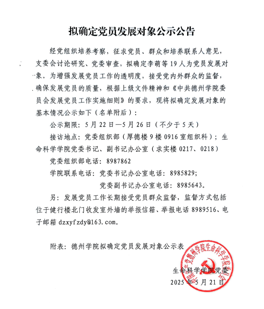 德州学院精品视频8AV拟确定党员发展对象公示情况