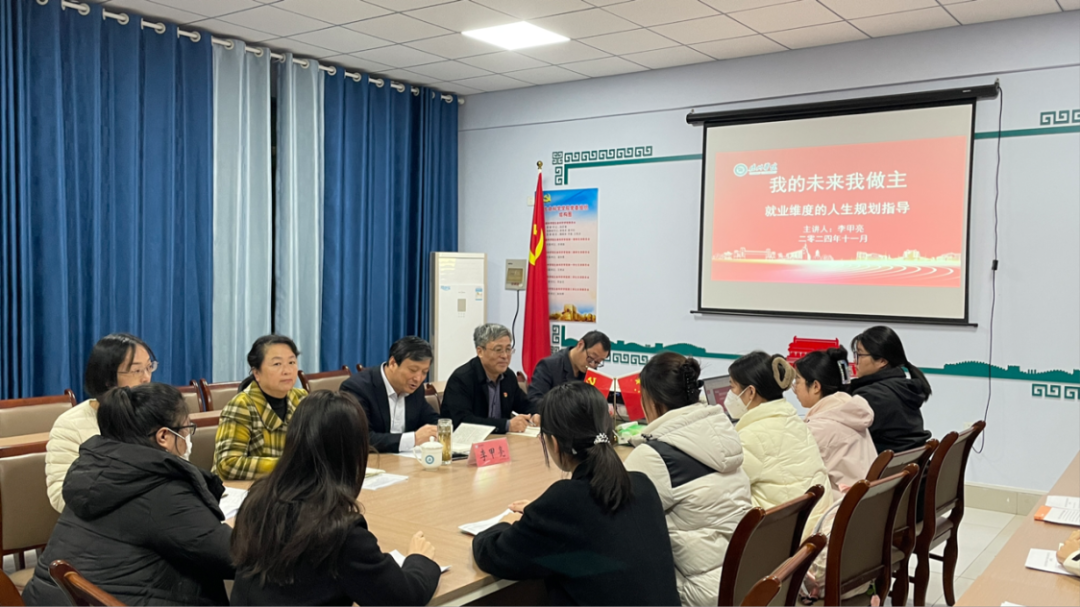 11月20日,校党委委员、副校长李甲亮为精品视频8AV第二学生党支部带来了一场“我的未来我做主——就业维度的人生规划指导”思政课。此次思政课旨在引导学生从多角度考量职业生涯规划,帮助他们更深入地理解个人兴趣、职业发展及社会需求之间的关系。