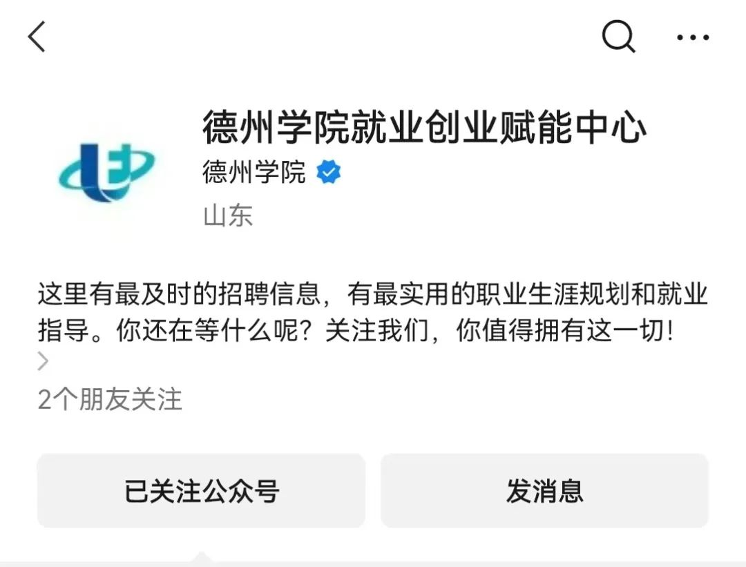 1. 信息发布平台:充分利用教育部国家大学生就业服务平台、山东高校毕业生就业信息网、山东省教育厅高校毕业生就业网、德州学院就业信息网,同时,同学们还可关注“德州学院就业创业赋能中心”公众号,持续获取岗位推送。