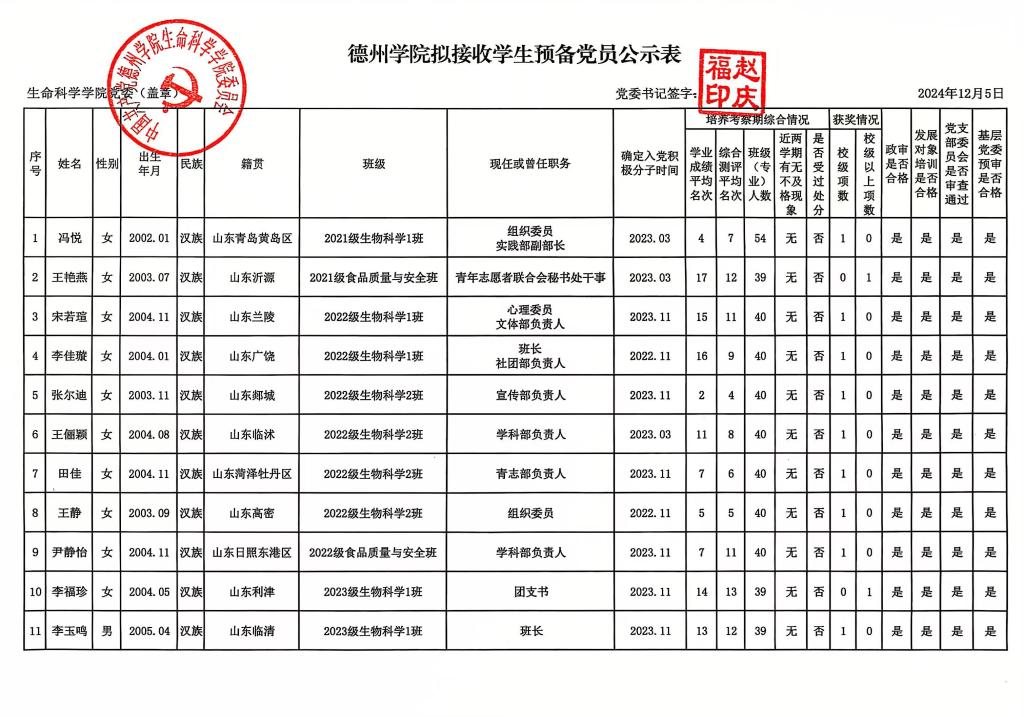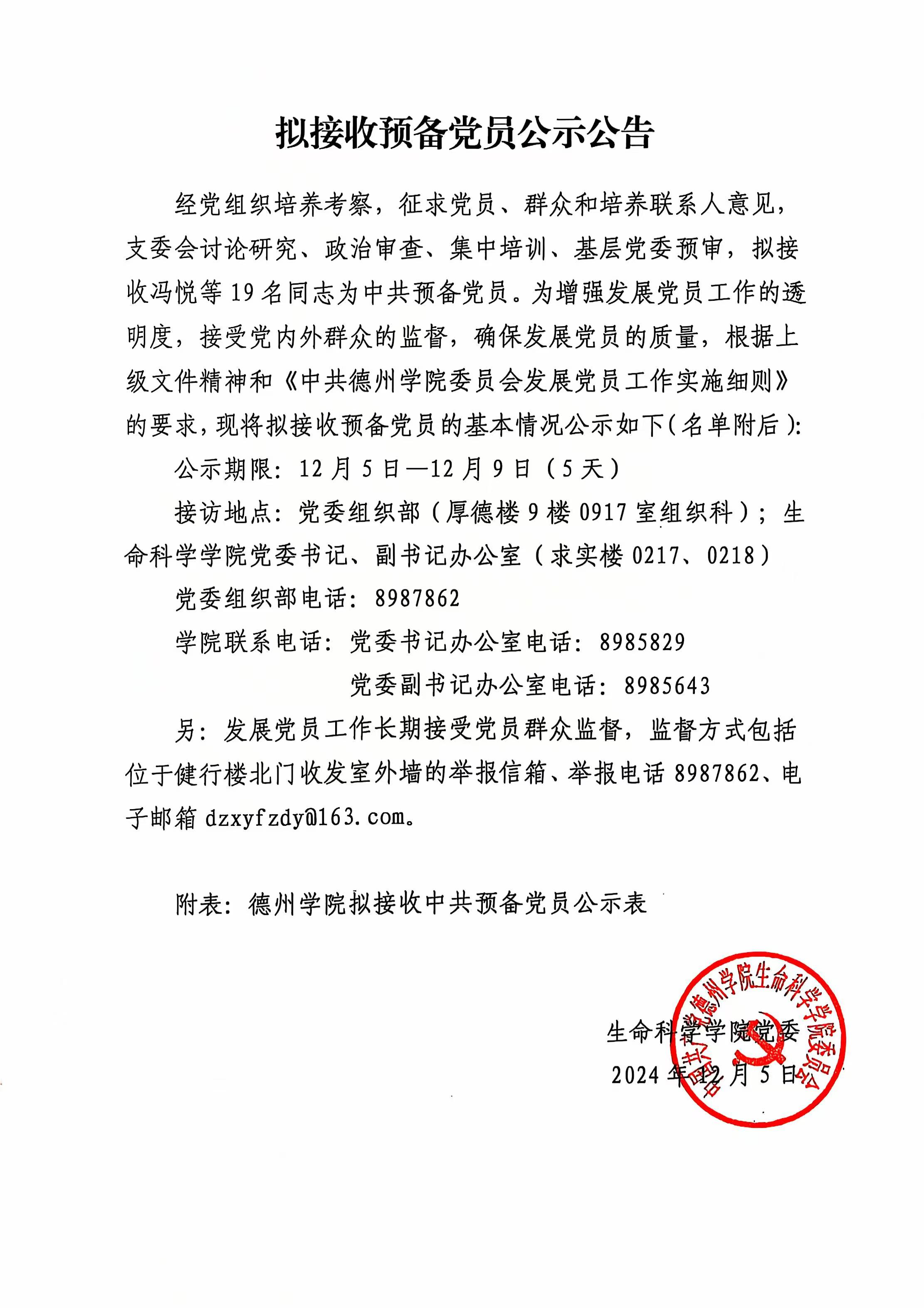 拟接收预备党员公示公告